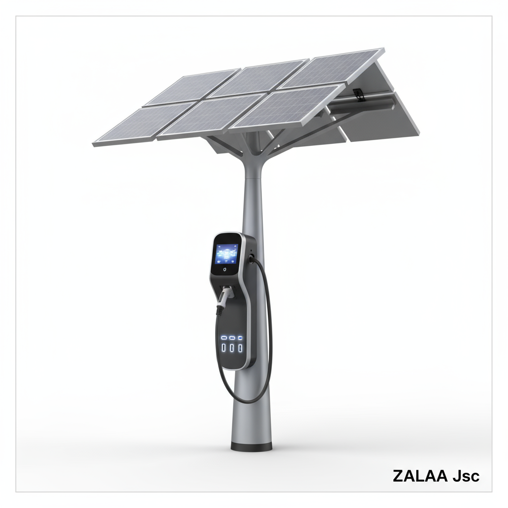 cây năng lượng mặt trời có trạm sạc, trạm sạc xe điện năng lượng mặt trời, solar ev charger, cột sạc usb công cộng, cây wifi năng lượng mặt trời, duan Zalaa Solutions