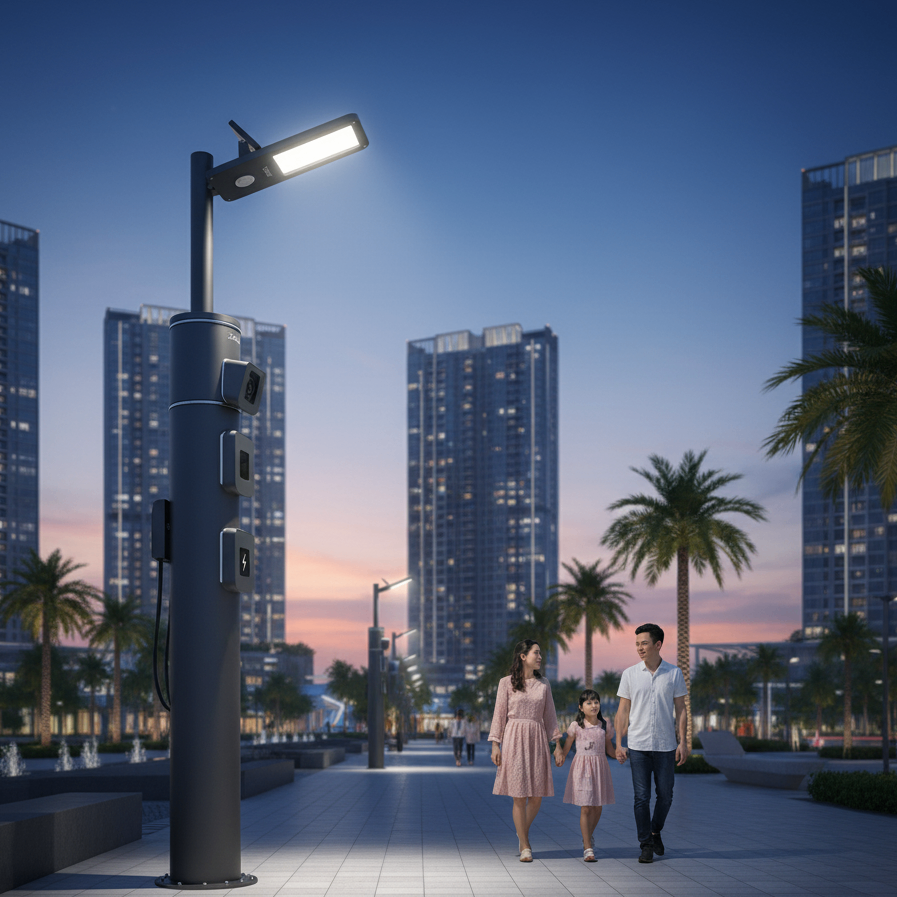 ✅ Câu trả lời nằm ở khả năng tích hợp và tùy biến không giới hạn. Cột Thông Minh, hay Smart Pole, là một trụ cột hạ tầng đô thị được thiết kế theo dạng module, không chỉ thực hiện chức năng chiếu sáng cơ bản mà còn tích hợp hàng loạt công nghệ tiên tiến. Nó có thể bao gồm camera an ninh, trạm sạc xe điện, cảm biến môi trường, màn hình LED thông tin và là điểm phát sóng 4G/5G hoặc Wifi. Tất cả được quản lý và điều khiển tập trung, hoạt động bền bỉ nhờ nguồn điện lưới hoặc năng lượng tái tạo, kiến tạo nên một hệ sinh thái IoT (Internet of Things) vững chắc cho thành phố.