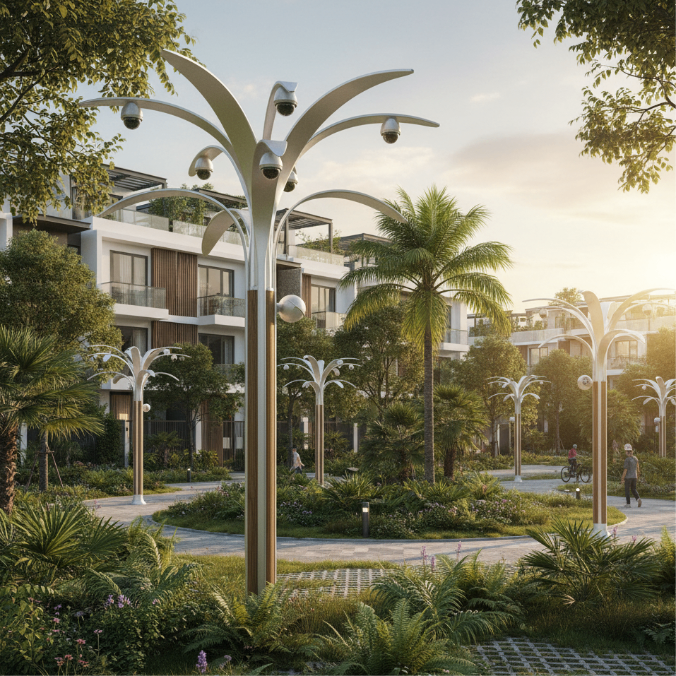 Cột thông minh theo thiết kế (Bespoke Smart Pole) là giải pháp cho phép sản xuất cột đèn chiếu sáng tích hợp công nghệ thông minh (như Wi-Fi, camera, cảm biến, trạm sạc) với kiểu dáng, vật liệu và tính năng được tùy biến hoàn toàn theo yêu cầu của từng dự án. Giải pháp này không chỉ đáp ứng nhu cầu chiếu sáng mà còn trở thành một tác phẩm nghệ thuật, một biểu tượng kiến trúc độc bản, nâng tầm giá trị và thẩm mỹ cho không gian đô thị, khu nghỉ dưỡng hay các công trình trọng điểm.