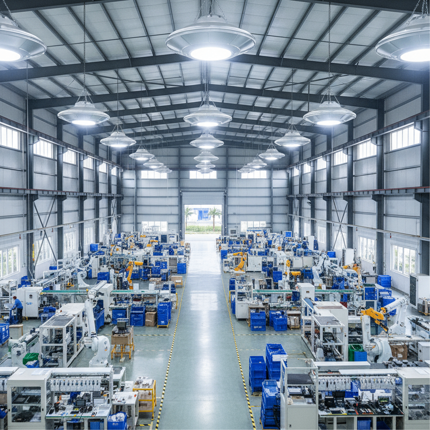 ✅ Đèn LED Highbay (tên tiếng Anh: High Bay LED Lighting) là loại đèn công suất lớn, được thiết kế đặc biệt để treo ở các vị trí trần cao (thường từ 6m trở lên). Chúng hoạt động dựa trên công nghệ chip LED hiệu suất cao, cung cấp nguồn sáng mạnh mẽ, đồng đều và tiết kiệm năng lượng vượt trội so với đèn cao áp truyền thống. Giải pháp này lý tưởng cho các nhà xưởng, nhà kho, trung tâm logistics, sân vận động, và các khu công nghiệp, giúp đảm bảo an toàn lao động, tăng năng suất và giảm đáng kể chi phí vận hành.