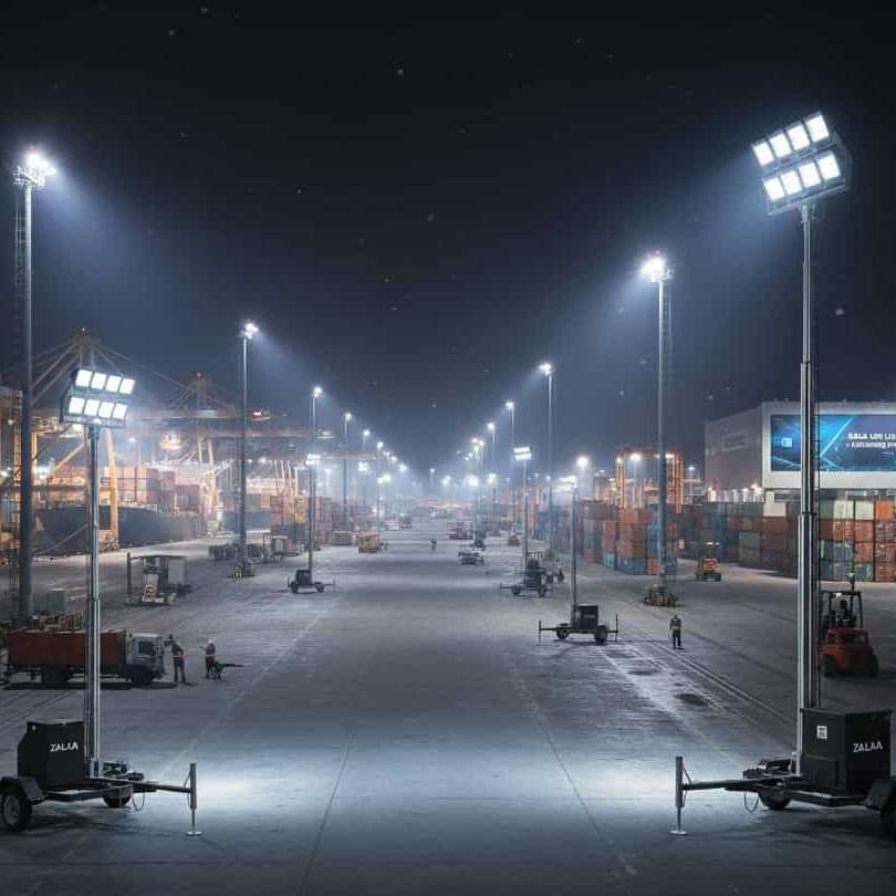 ✅ Giải pháp chiếu sáng của ZALAA sử dụng đèn pha LED công suất lớn và cột đèn di động linh hoạt, đảm bảo an toàn và hiệu quả vận hành 24/7. Hệ thống không chỉ giúp tăng cường an ninh mà còn tối ưu hóa quy trình xếp dỡ và tiết kiệm đáng kể chi phí năng lượng cho các khu vực quy mô lớn.
