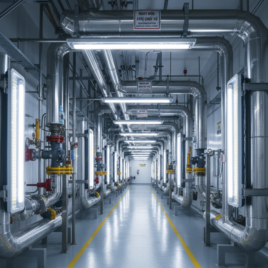 ✅ Câu trả lời nằm ở "Nguy Cơ Phát Sinh Tia Lửa". Đèn Chống Cháy Nổ, với tên tiếng Anh là Explosion-Proof Lighting, là thiết bị chiếu sáng được thiết kế đặc biệt để hoạt động trong các môi trường có chứa khí, hơi hoặc bụi dễ cháy nổ. Ý nghĩa của nó không phải là "chống lại một vụ nổ từ bên ngoài", mà là "ngăn chặn chính nó trở thành nguồn gây nổ". Toàn bộ kết cấu của đèn được chế tạo kín hoàn toàn, với vật liệu siêu bền để nếu có sự cố điện phát sinh tia lửa bên trong, tia lửa đó sẽ bị dập tắt và không thể thoát ra môi trường bên ngoài. Đây là yêu cầu an toàn bắt buộc tại các khu vực nguy hiểm được phân loại là Zone 1 và Zone 2 theo tiêu chuẩn quốc tế ATEX và IECEx.