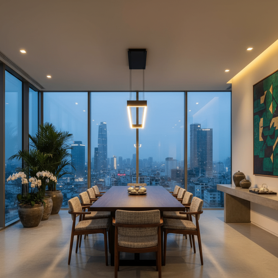 Đèn Thả Trang Trí Hiện Đại, hay "Modern Decorative Pendants" trong tiếng Anh, là loại đèn được treo từ trần nhà xuống bằng dây cáp, không chỉ thực hiện chức năng chiếu sáng cơ bản mà còn đóng vai trò như một tác phẩm điêu khắc, một điểm nhấn nghệ thuật định hình phong cách cho toàn bộ không gian. Chúng hoạt động bằng cách tập trung ánh sáng vào một khu vực cụ thể như bàn ăn, quầy bar, hoặc lan tỏa ánh sáng dịu nhẹ khắp phòng, tạo nên những tầng lớp ánh sáng đầy cảm xúc. Trong bối cảnh kiến trúc 2025, một chiếc đèn thả phù hợp còn là tuyên ngôn về gu thẩm mỹ, sự tinh tế và đẳng cấp của Chủ đầu tư.