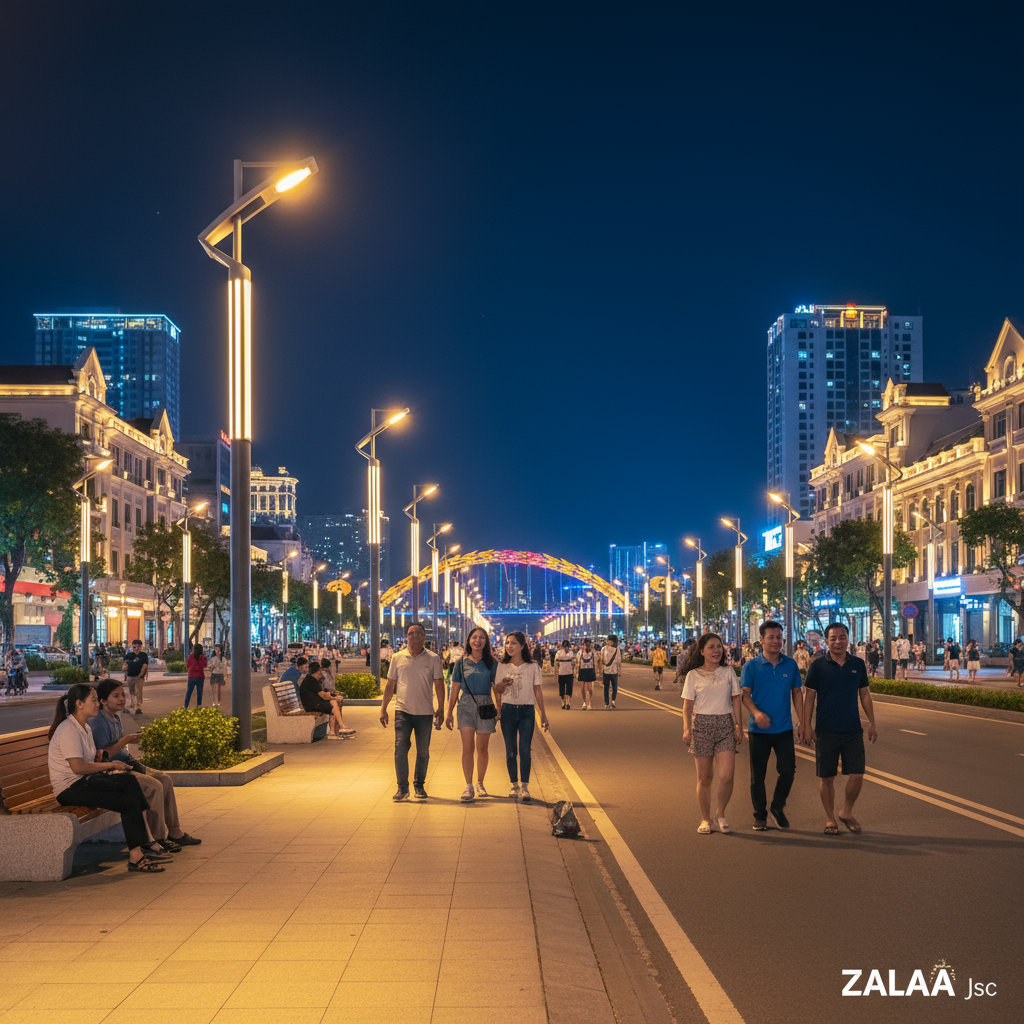 Chúng tôi không ngừng nghiên cứu và ứng dụng các công nghệ tiên tiến nhất: chiếu sáng lấy con người làm trung tâm (Human Centric Lighting), tích hợp IoT để thu thập dữ liệu môi trường, và sử dụng năng lượng tái tạo. Tương lai của chiếu sáng đô thị là một hệ sinh thái thông minh, tương tác và bền vững, và ZALAA tự hào là người tiên phong dẫn lối tương lai đó tại Việt Nam.