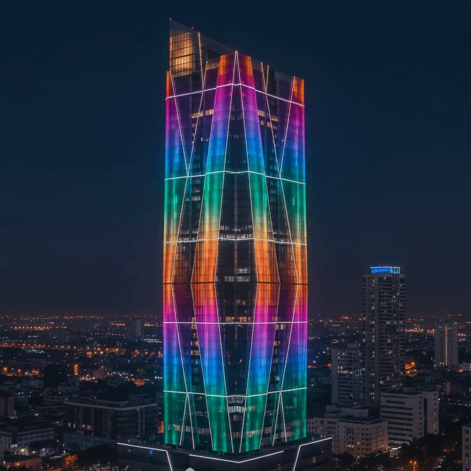 ZALAA Lighting thực hiện điều này bằng cách kết hợp các sản phẩm đèn LED hiệu suất cao như Wall Washer, Spotlight, Pixel LED với hệ thống điều khiển thông minh DMX, cho phép tạo ra hàng triệu màu sắc và vô số kịch bản chiếu sáng động, biến những ý tưởng táo bạo nhất của kiến trúc sư thành hiện thực.