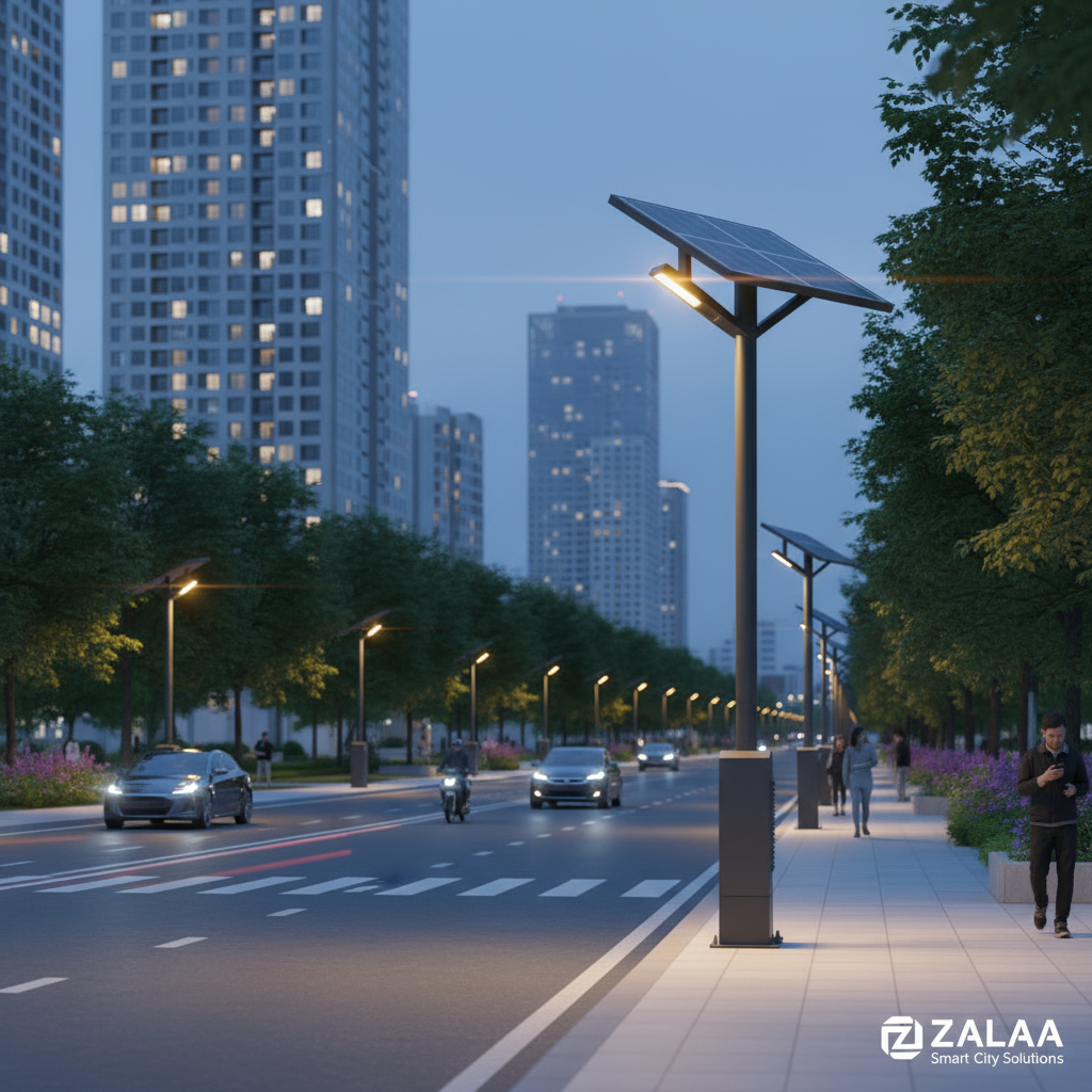 Tương lai hướng tới các "Cột đèn thông minh" (Smart Poles) không chỉ để chiếu sáng mà còn tích hợp camera an ninh, cảm biến môi trường, trạm sạc xe điện, và điểm phát wifi. ZALAA đã và đang tiên phong nghiên cứu, phát triển các sản phẩm sẵn sàng cho kỷ nguyên IoT và Smart City, giúp các dự án của Anh Chị không bị lỗi thời.