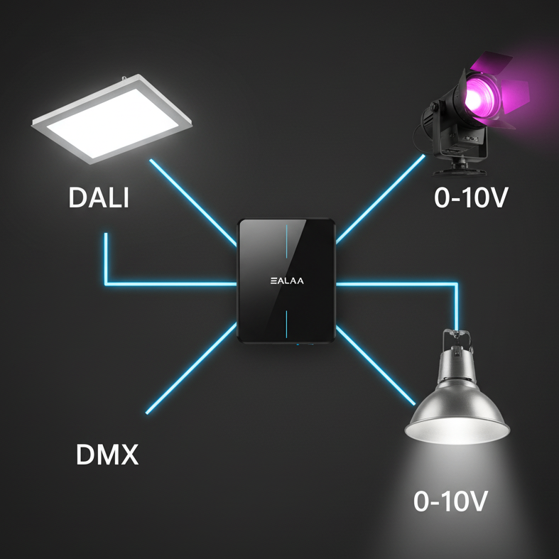 Đây là những "phiên dịch viên" đắc lực, giúp các hệ thống khác nhau có thể "nói chuyện" với nhau. ZALAA cung cấp các bộ chuyển đổi như Zigbee sang DALI, KNX sang DALI, DMX sang 0-10V... giúp tích hợp liền mạch các giao thức, tạo nên một hệ thống đồng nhất.