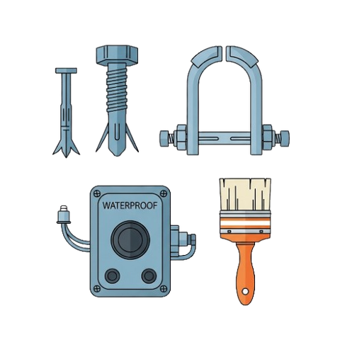 phụ kiện lắp đặt, vật tư phụ giao thông, tay đèn, kẹp cột, hộp đấu nối ip67, bulong móng cột, sơn phản quang, zalaa lighting, #phukienlapdat, #vattuphu, #bulongmong, #hopdaunoi, #zalaalighting, #duangiaothong